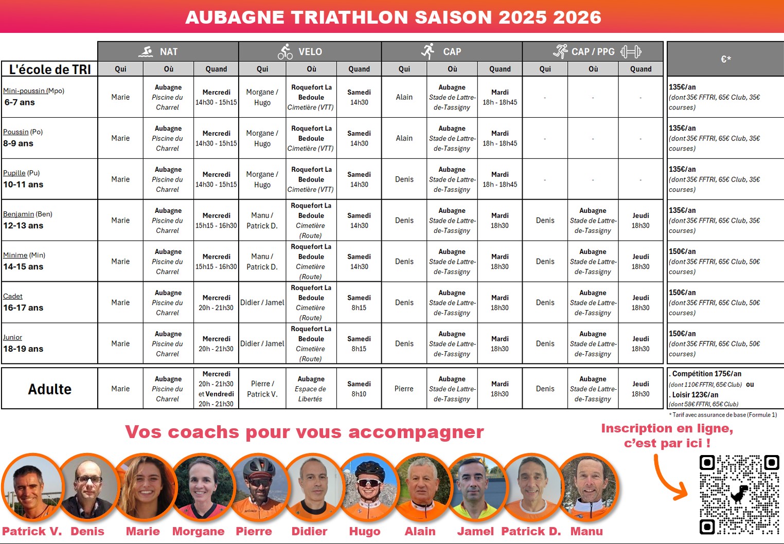 Les changements de site en cours d'année seront communiqués par l'entraineur (sites situés dans la région aubagnaise).